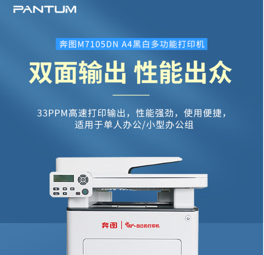 奔圖(PANTUM)M7105DN A4黑白激光 多功能一體機(jī) 支持輸稿器 自動(dòng)雙面打印